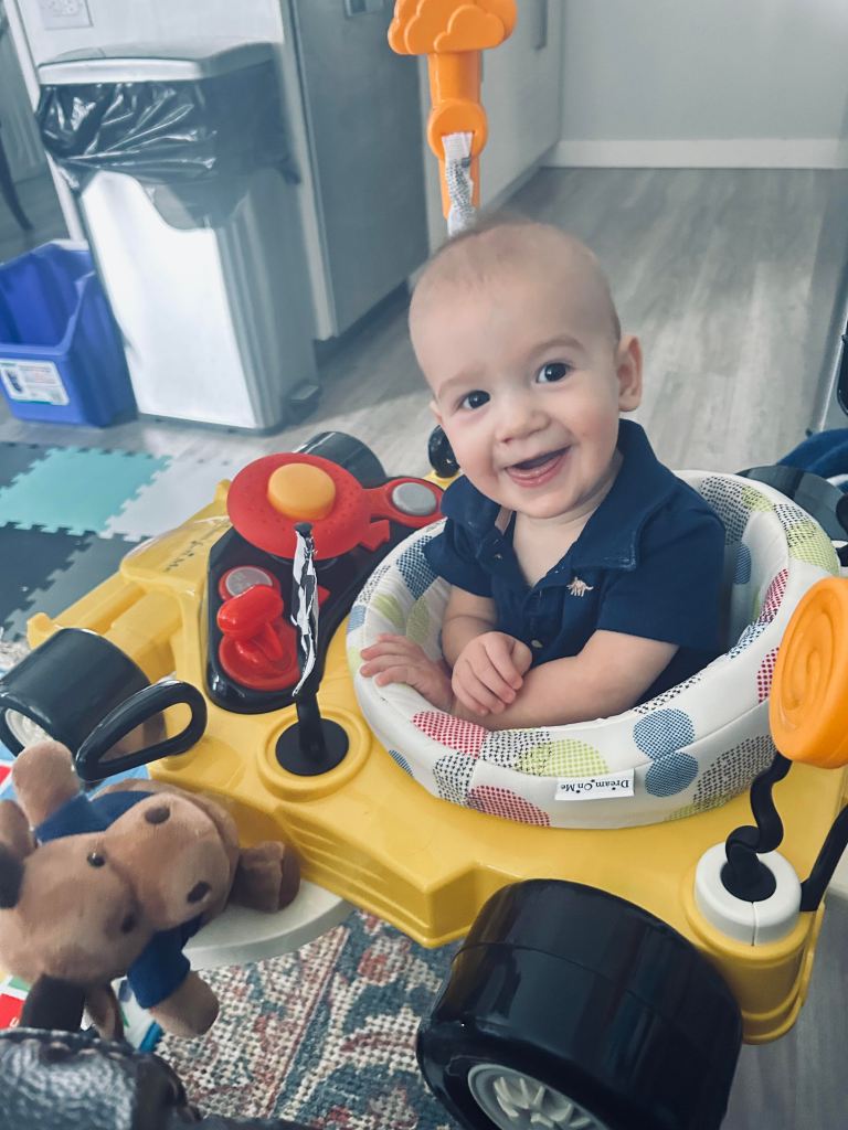 It has a horn, and it sort of has a radio and when I get tired of driving, I can just spin around and learn the alphabet.